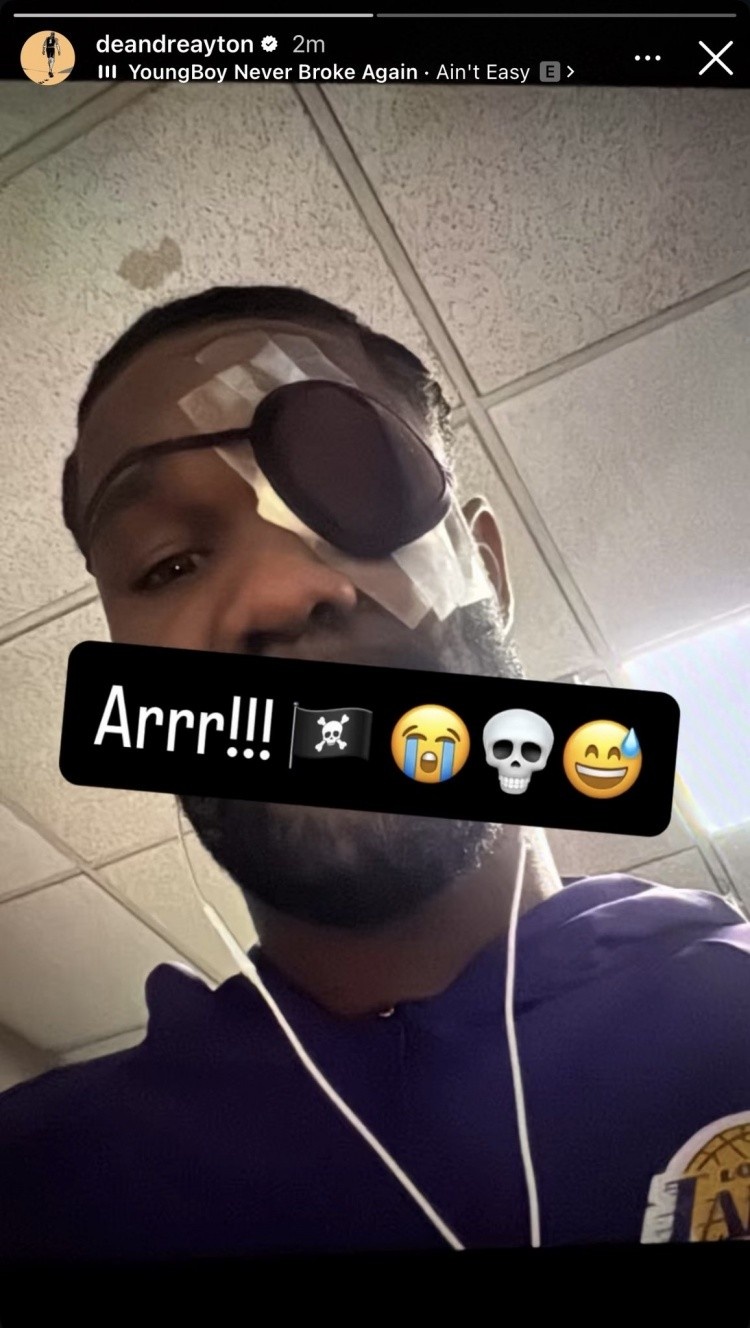 上一场对阵掘金,艾顿在第二节遭遇对手击打面部后左眼受伤退出比赛,赛后他晒出照片,自己的左眼已经被包扎好并戴上了眼罩。